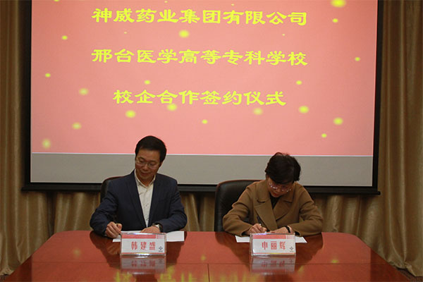 韩建盛表示,邢台医学高等专科学校为河北省优质学校,陆续为神威药业输送了许多管理和技术研发等方面的优秀人才,遍及企业经营管理的各个岗位。此次双方达成长期、紧密的合作关系,将共同建设人才培养基地,逐步实现教育和产业发展的精准对接,打通企业人才输送的绿色通道,在产品生产、技术研发、经营管理、产品销售等各个领域,为企业提供强有力的人才支持和保障。