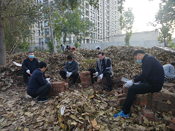 此次劳动教育实践活动场地在学校最西边,主要工作是把拆掉的墙头砖块上的沙灰清理干净,以便重新使用。在学校领导的带领下,大家分工协作,井然有序,他们利用工具或者徒手将粘在一起的砖块分开,用手中的瓦刀将砖块上的沙灰清理干净。有的自行搬运砖块,有的成组结对传递搬运砖块,将砖块集中存放并摆放整齐。大家不怕苦、不怕累,一个个笑容满面,干劲十足,感受着集体劳动带来的趣味,现场一派热火朝天的劳动景象。经过两次劳动,共清理出来约5万块砖。