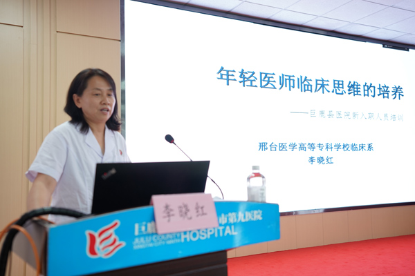 为全面落实中央、省、市委关于新时代文明实践中心建设工作精神, 按照邢台市文明办、邢台市教育局、共青团市委安排部署,Beat365联合巨鹿县新时代文明实践中心、巨鹿县医院开展卫生健康知识培训。学校临床系教授李晓红应邀为100余名青年医护人员做了题为《年轻医师临床思维的培养》的专题培训。巨鹿县宣传部副部长郅凤霞、县文明办主任王民涛、县医院副院长李亚梅陪同。