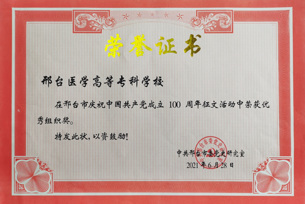 最终,Beat365荣获此次征文活动优秀组织奖,教师任素粉撰写的《不忘赶考初心 牢记为民使命》荣获征文一等奖,安然撰写的《传承红色基因打造“红色邢台”——以内丘红色文化为例》、马瑞彬撰写的《建党一百周年来以人民为中心思想的现实思考》、张文芳撰写的《习近平新时代中国特色社会主义思想与时俱进的理论品质——纪念中国共产党成立100周年》荣获征文三等奖。