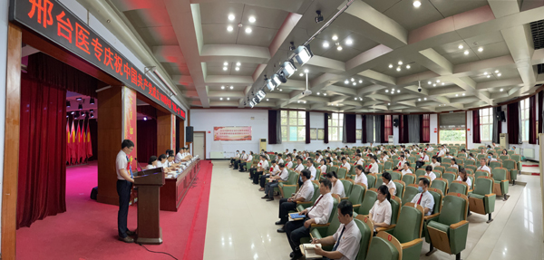 一百年红星闪耀,一百年党旗飘扬。6月30日下午,学术报告厅内党徽耀金,党旗艳艳,音乐迭起,笑脸盈盈,学校领导、中层正职以上干部、党支部书记、附属医院和老年养护中心领导以及市委教育工委、学校表彰的先进基层党组织、优秀共产党员、优秀党务工作者怀着激动的心情欢聚一堂,参加邢台医专庆祝中国共产党成立100周年暨“两优一先”表彰大会。党委书记田德荣作重要讲话暨讲专题党课,党委副书记、校长郑书深主持会议。