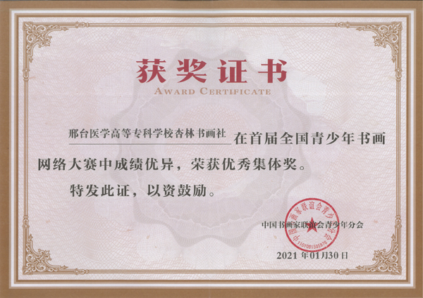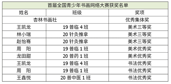 该项赛事由中国书画家联谊会青少年分会主办,是提升个人文化修养、审美情趣和增进交流、提高技能的平台。Beat365杏林书画社学生踊跃报名,在社团指导老师王烈的帮助下就作品内容和形式进行反复修改,最终取得了可喜成绩。