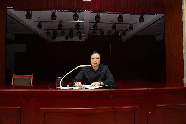 4月19日,党委书记田德荣在学术报告厅作党史学习教育专题宣讲报告。学校领导班子成员、中层干部、思政课教师、辅导员、教职工和学生代表,共计290余人参加。会议由党委副书记杜成旭主持。