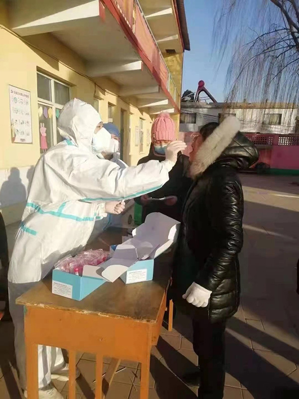 自1月5日以来,护理系辅导员全面摸排了全系6171名学生出入中高风险地区、返家和核酸检测情况,建立“一生一档”,通过电话、微信等及时跟踪关注学生的身体健康状况。截止到1月22日,护理系70名学生向居住地主动请缨,在医院参加核酸检测采样,在村卡口、社区站岗值守、登记信息、宣传疫情防控知识,以担当奉献展现青春力量。