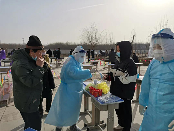 2018级养生班马文瑞、赵忠涛两位同学1月10日一大早就到巨鹿县东下疃村为村民采集核酸标本,下午当东下疃村采集扫尾完毕后又赶赴支援西下疃村,为了保证应检尽检,他们还入户采集,为那些行动不便和卧床的村民进行核酸检测。虽寒风凛冽,他们毫无怨言,积极参与疫情防控工作,为家乡贡献一份力量。