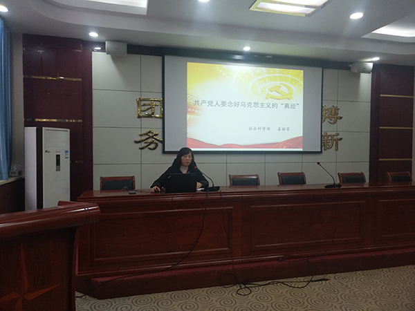 培训班上,社科部主任姜丽芳以《共产党人要念好马克思主义“真经”》为题从何谓马克思主义、为什么学习马克思主义、学习马克思主义的哪些内容等三个方面,给大家讲解了马克思主义的内涵、组成部分以及主要内容,提出了科学学习马克思主义的方法,号召大家要在实践中丰富和发展马克思主义。
