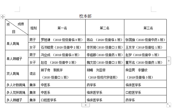 此次比赛设有单人跳绳、双人跳绳、多人计数跳绳、多人花样跳绳、单人踢毽子、多人踢毽子等6个项目,分别在皇寺校区和校本部同时进行。