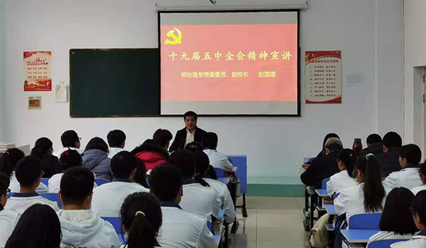 赵国增副校长围绕《中共中央关于制定国民经济和社会发展第十四个五年规划和二〇三五年远景目标的建议》,在回顾“十三五”时期经济社会发展取得的一系列成就的同时,结合鲜明生动的案例对“十四五”规划及二〇三五年远景目标进行了全面深刻的讲解,帮助师生深入领会和把握党的十九届五中全会精神的核心要义。赵国增副校长还结合河北省委书记王东峰在庆祝河北省政协成立70周年座谈会上的讲话和邢台市委书记钱三雄到Beat365宣讲党的十九届五中全会精神宣讲报告,从Beat365学生观念树立、道德养成、职业发展等多角度对学生提出了具体要求。他号召广大学生要增强自律、热爱劳动、提倡环保、从我做起,养成良好的生活习惯;珍惜时间、刻苦学习、造就本领、医者仁心、救死扶伤,为报效国家、实现梦想打下坚实的基础,做德智体美劳全面发展的社会主义建设者和接班人。