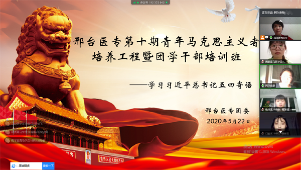 为培养新时代青年马克思主义者,深入学习贯彻习近平总书记五四寄语精神,提高团学干部的政治素养和综合能力,5月22日,校团委于线上组织开展邢台医专第十期青年马克思主义者培养工程暨团学骨干培训班—学习习近平总书记五四寄语专题活动。校团委全体老师、273名青马班学员参加活动。