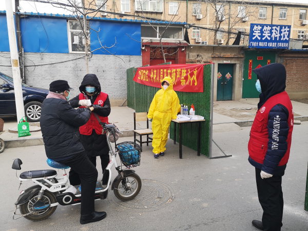 党徽闪耀最前沿,党员挺在最一线,干部站好第一班岗。活动中,学校领导主动与社区负责人联系,党员干部服从社区防控工作的统筹调配,在社区街道、福满园小区积极协助配合社区工作人员做好测量体温、出入登记、维护秩序、封堵道路等防控工作。学校组宣处、纪检监察处、后勤管理处等部门负责人,站好第一班岗,筑牢支部“主心骨”,确保了社区老旧小区有人管理、有人防护,让居民放心。鲜艳的小红帽,靓丽的红马夹为疫情笼罩的城市增添一笔生机勃勃的颜色。