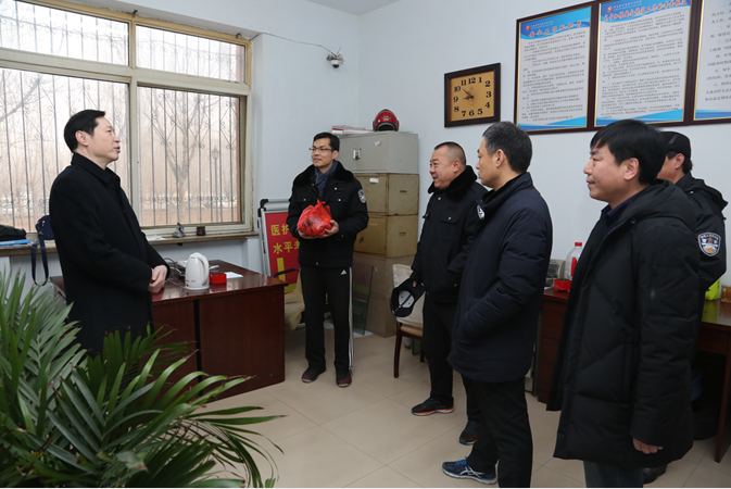 学校党委书记田德荣,党委副书记李建广,党委委员、副校长穆吉兴、张志强一行先后慰问了校本部总值班室、安全工作处、监控中心、后勤管理处、学生公寓、门岗等在岗值守的干部职工。“感谢大家坚守岗位,辛苦了!”“新年好,给大家拜个年!”每到一处,校领导都热情地与值班人员握手致意、亲切交谈,向他们送上瓜子、花生、糖、桔子等新年慰问品和新年祝福,对他们在春节期间牺牲与家人团聚,舍小家顾大家,坚守岗位表示衷心地感谢。希望大家把安全放在首位,做好值班、后勤保障、安全保卫等工作,确保全校师生员工度过一个安全稳定的春节。