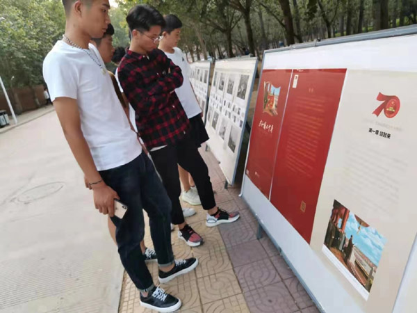 图片展共由“站起来”“富起来”“强起来”三个部分组成,通过图文结合的形式,全方面多角度展示了70年间中国在政治、经济、军事、文化、科技、教育、交通、旅游事业发展以及民族团结、国际关系等领域所取得的一系列重大成就。参观过程中,同学们簇拥在展板前,认真观看每张图片,深刻感受新中国成立70周年以来的沧桑巨变,纷纷表示要珍惜今天来之不易的幸福生活,不忘初心、牢记使命,为实现伟大中国梦贡献力量。