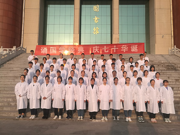 为庆祝中华人民共和国成立70周年,9月23日至27日,公共教学部组织2019级新生开展了“诵国学经典,庆七十华诞”晨读活动。