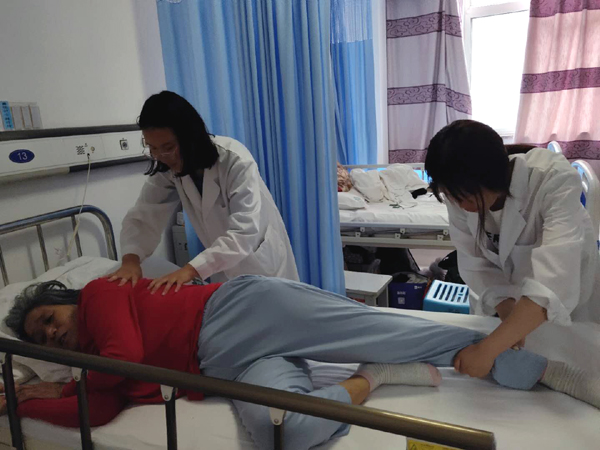 在老师的指导下,针推协会的同学们对患者耐心细致的询问病情,认真仔细的检查身体,最后根据病症施以推拿按摩。此次活动同学们服务十余名住院患者,减轻了患者的病痛,获得了患者的一致好评。