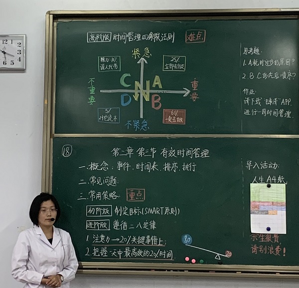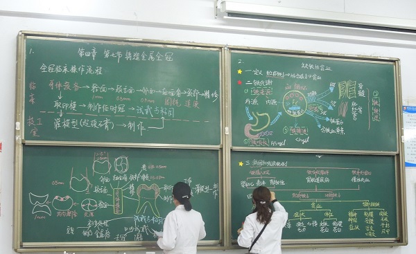 为夯实教师教学基本功,着力加强青年教师培养,提升教师教学能力和课堂教学质量,增进广大教师学习交流,4月8日下午,由教务处组织的教师板书书写设计大赛决赛在8号教学楼一层的三个阶梯教室同时举行。由各系部及第二附属医院推荐的十位专家担任评委。全体专任教师到场学习观摩。