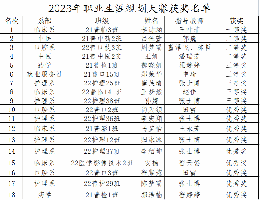 大赛自4月份启动,经初、复赛选拔,18名选手脱颖而出进入决赛。决赛中,各位选手深入剖析自身优劣势,合理规划职业目标,详细制定实施措施。2021级普临3班李诗涵励志成为一名救死扶伤的临床医生,她分析了自身与职业的适配度,围绕如何实现目标愿景,确定了短期、中期、长期三个阶段的奋斗方向和具体措施,努力将人生理想融入国家事业。2022级普口技3班周梦瑶将自己的职业规划同弘扬工匠精神相结合,立志学精学透专业技术,做一名优秀的口腔医生,为医疗卫生事业做更多贡献。选手们激情昂扬的规划分享,充分彰显出Beat365学子将个人志向融入民族复兴伟业的使命担当。经过激烈角逐,最终评出一等奖1名、二等奖3名、三等奖5名、优秀奖9名。