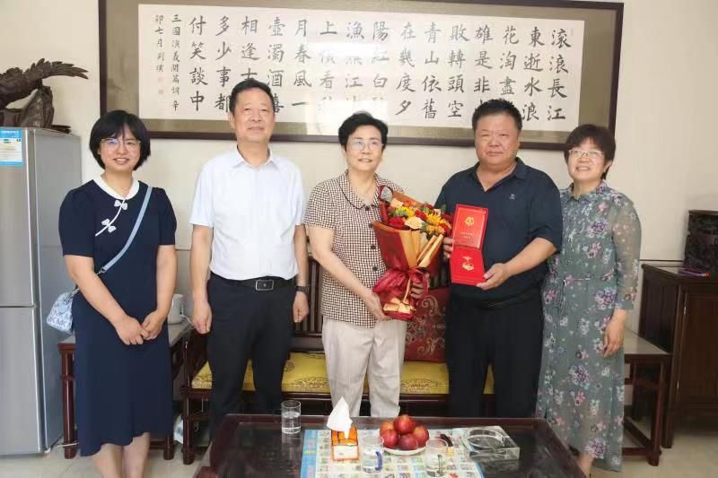 6月30日上午,学校党委副书记、校长郑书深,党委副书记杜成旭,党委委员、组织宣传统战部部长张永格,人事处副处长、老干部党支部书记兴业等一行人来到原党委书记陈联群家里,郑书深校长、杜成旭副书记向陈书记送上“光荣在党50年”纪念章和鲜花,并致以亲切的问候和崇高的敬意,感谢陈书记为学校发展做出的突出贡献,介绍了近几年学校事业发展和建院升本工作进展情况。陈书记表示会一直关心学校事业发展,并祝愿学校建院升本目标能够早日实现。