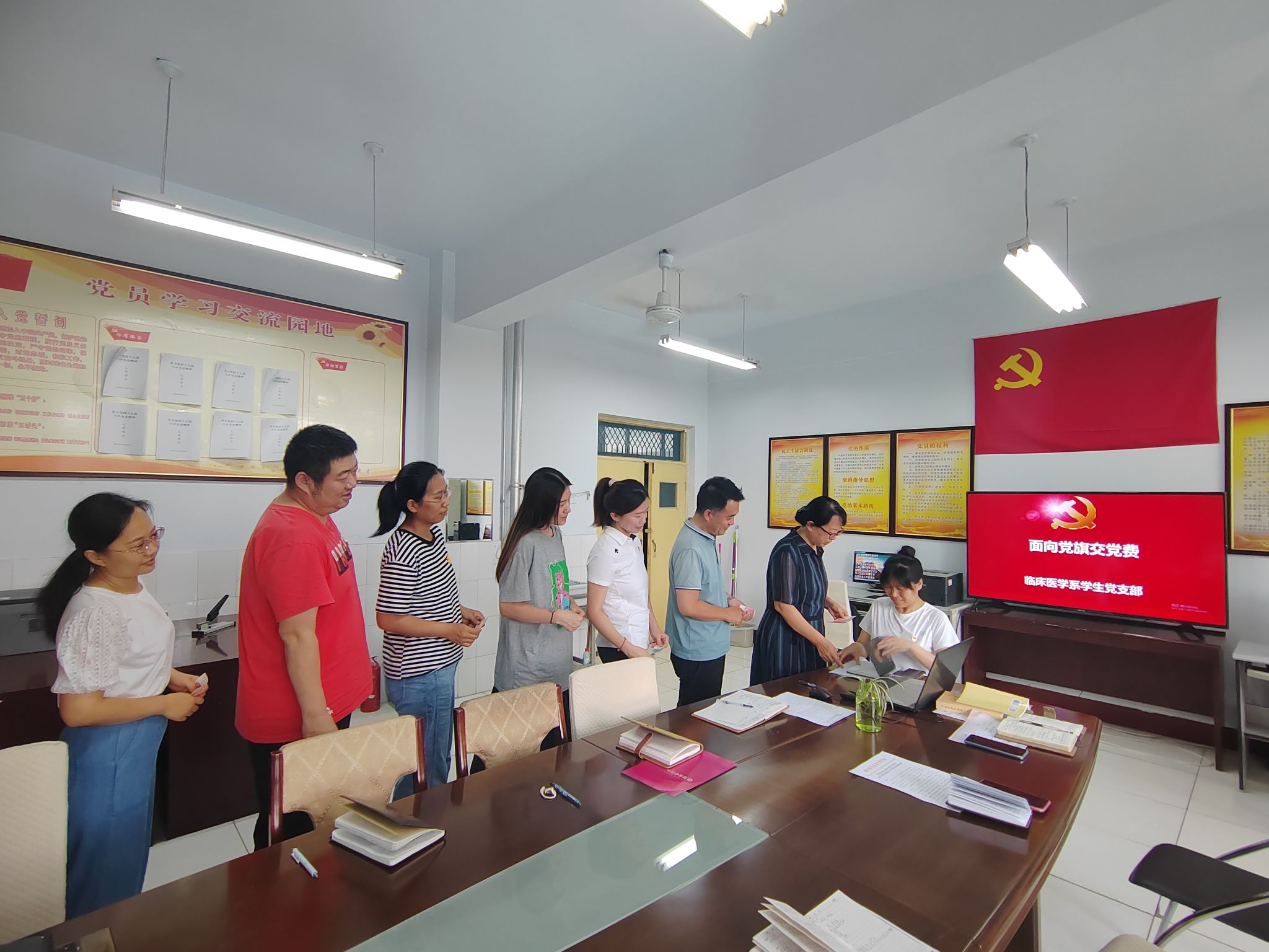举行新党员入党宣誓仪式(老党员重温入党誓词)活动。各党支部组织新党员入党宣誓仪式(老党员重温入党誓词),党员们戴着党徽,面对鲜红的党旗和庄严的誓词,高举右拳,庄严宣誓:“我志愿加入中国共产党,………,随时准备为党和人民牺牲一切,永不叛党”。铿锵有力的誓言,表达了新党员听党话、跟党走的坚定决心,让老党员再次接受心灵的洗礼,体现了新老党员同志们对党的无比热爱和忠诚。护理系党总支新入党的学生党员鲁璇表示加入党组织完成青年追求政治进步的“人生三部曲”最关键的一步,入党不仅是一份荣耀,更是一种责任,要以今天为一个新的起点,以入党宣誓为新的动力,切实践行入党誓词。口腔医学系党总支专职组织员卢青感言:面向党旗,重温入党誓词,意义在于与时俱进,恪守承诺。无论是当年入党宣誓还是现在重温誓词,最重要都的是要牢记誓词,并以具体、实在、一以贯之的行动去恪守,在自己的岗位上,发挥党员的先锋模范作用。