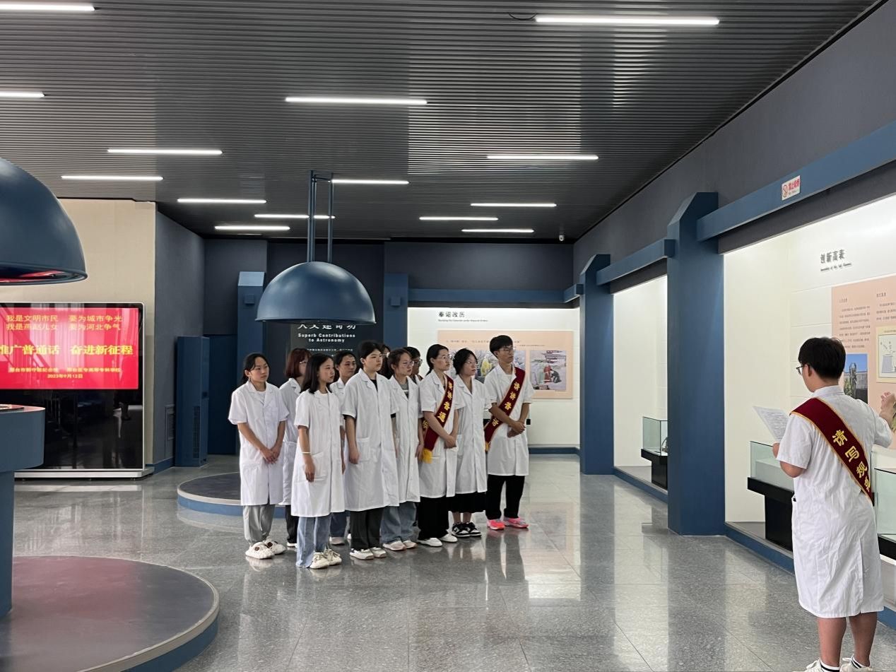 积极创新推广宣传形式,组织15名师生到郭守敬纪念馆开展“说好普通话 讲好中国故事”主题活动,多名学生现场担任讲解员,向前来参观的游客宣讲邢台人文历史,宣传推广普通话,得到广泛好评。