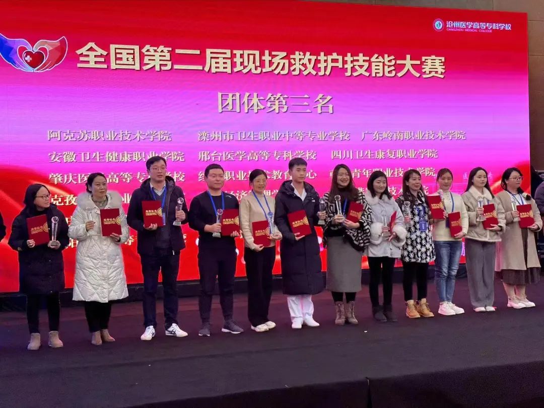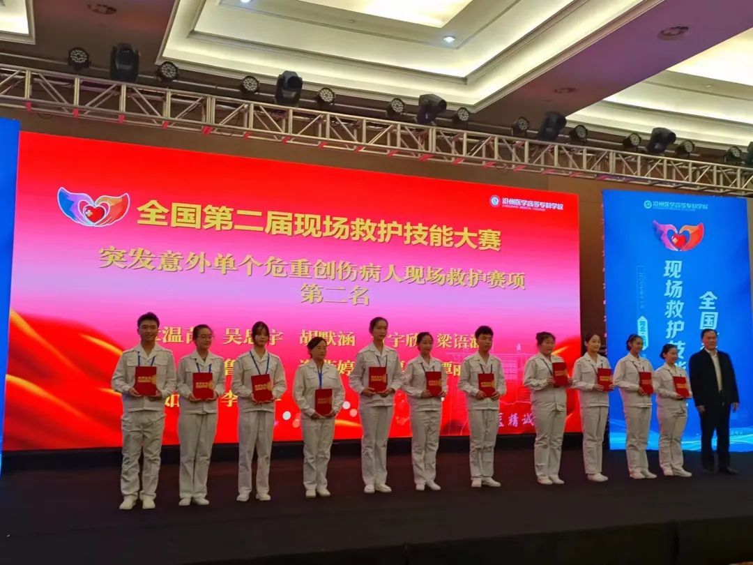 近日,Beat365在华夏基金会项目学校协作会和华夏急救培训联盟主办的2023年度全国第二届现场救护技能大赛中喜获佳绩,2022级护理11班鲁悠然在突发意外单个危重创伤病人现场救护赛项中获得第二名,2022级护理6班赵佳蕊、2022级护理10班肖嘉淇、2022级护理34班陈佳莹获得优秀个人,李军省、马金梅、冯志明、孟惠4名教师获得优秀指导教师,学校获得团体第三名。