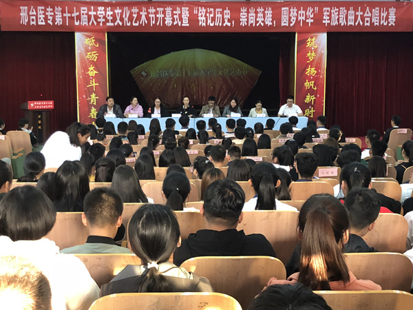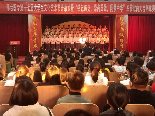 为全面拓展广大青年学生素质,展现Beat365青年学生的青春风采和精神面貌,营造纪念改革开放四十周年的良好氛围,引导大学生树立为实现中华民族伟大复兴的“中国梦”而努力奋斗的目标,10月11日下午,校团委在学术报告厅举办第十七届大学生文化艺术节开幕式暨“铭记历史,崇尚英雄,圆梦中华”军旅歌曲大合唱比赛。团委副书记卢青、甄帅和各系团总支书记参加了开幕式并担任评委。各系学生代表200余人观看了开幕式和大合唱比赛。