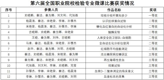 近日,Beat365教师在第八届全国职业院校教师检验技能竞赛、第六届全国职业院校检验微课大赛、第三届全国职业院校检验专业课程思政大赛中取得优异成绩,共获一等奖4项、二等奖10项、三等奖6项。