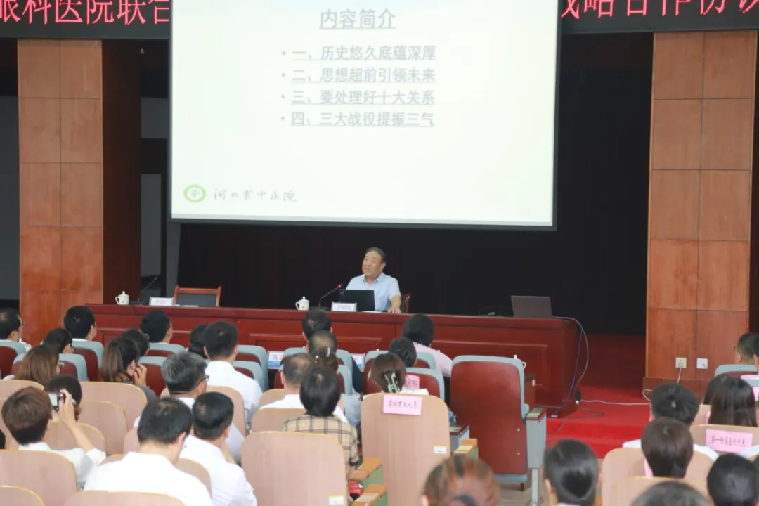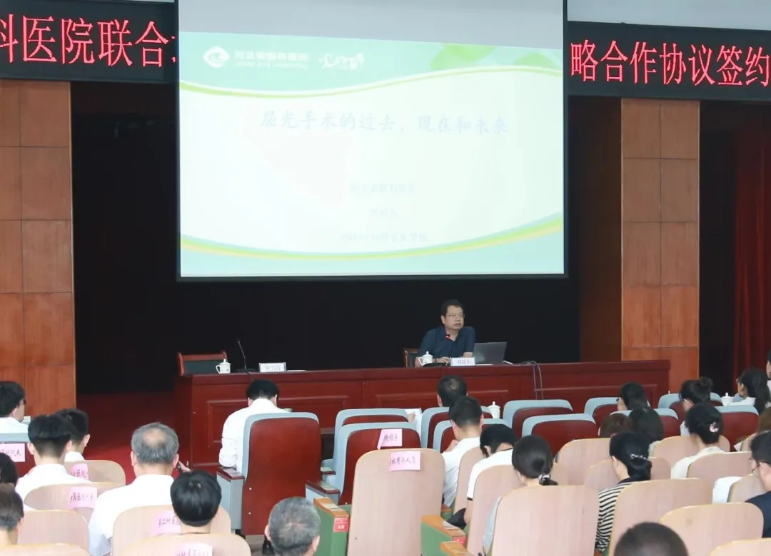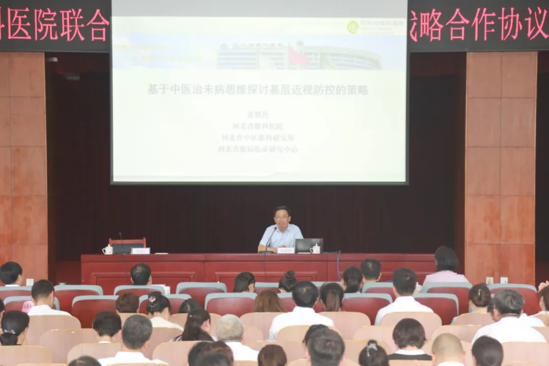 签约后,国医大师李佃贵以《中医是传统医学更是未来医学》为题,河北省眼科医院原党委书记张铭连以《基于中医治未病的思维探讨基层近视防控的策略》为题,河北省眼科医院党委委员、副院长刘延东以《屈光手术的过去、现在和未来》为题,分别围绕各自的研究领域,以深厚的学术背景和丰富的研究经验,通过丰富的案例和详实的数据,为与会人员和师生代表进行了高水平学术讲座。