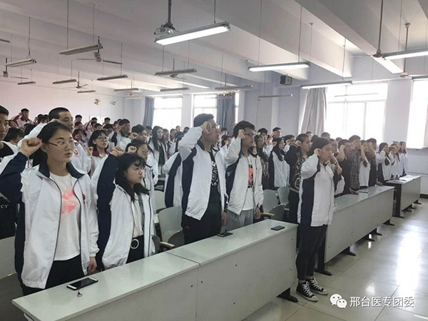 为增强新团员的光荣感和使命感,4月19日中午,团委在 2017级普影1班举办了邢台医专2017-2018学年第二学期新生入团仪式。