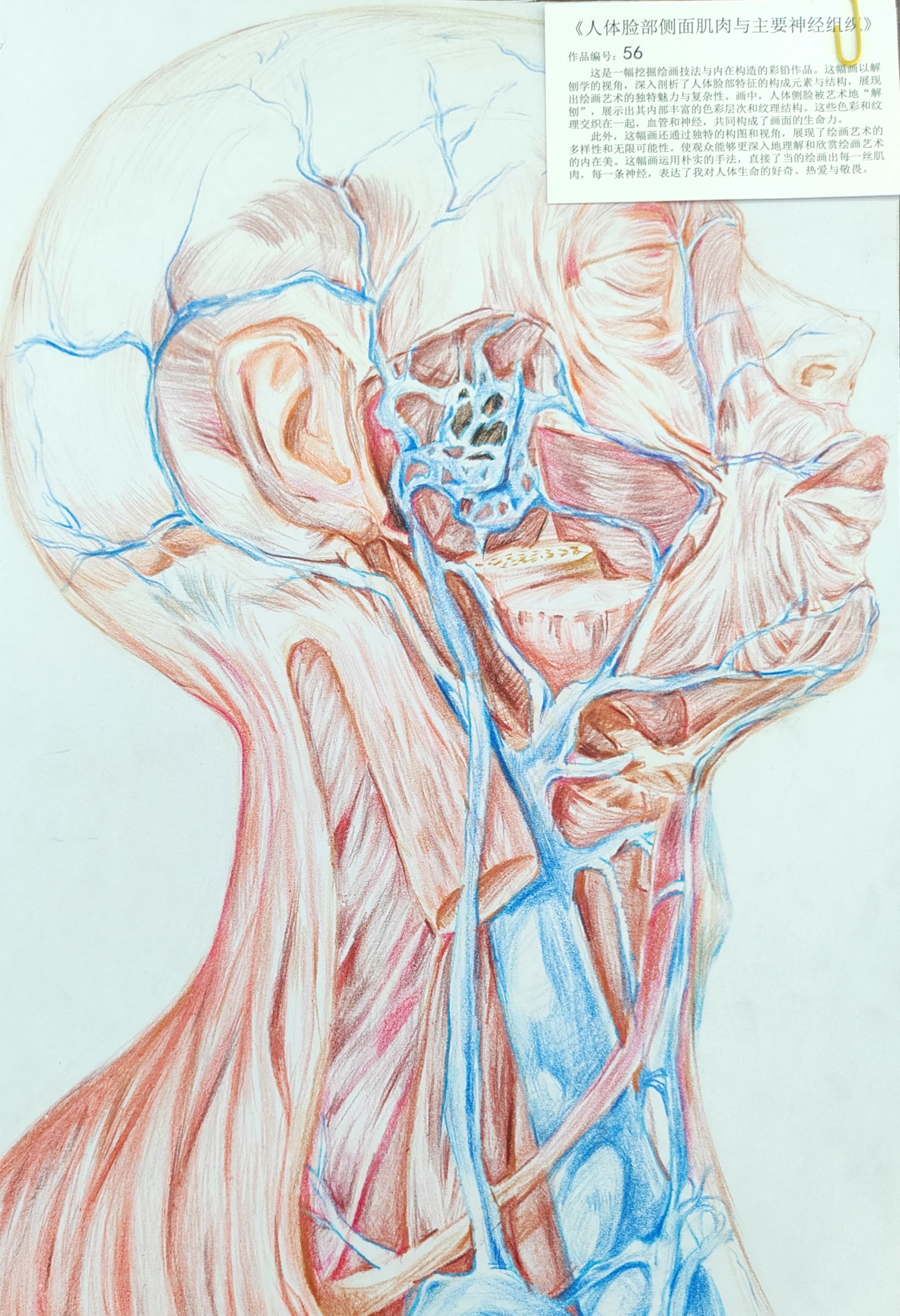 三等奖:《人体脸部侧面肌肉与主要神经组织》