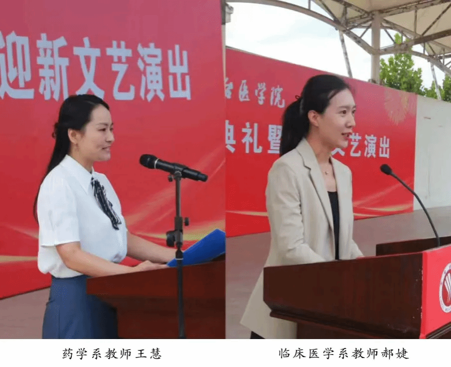 药学系教师王慧和临床医学系教师郝婕代表全体教师,向2024级新同学表示欢迎和祝愿。她们结合自己的亲身经历和心得体会,勉励同学们要制定明确规划,把握成长节奏,实现自身持续进步;要勤奋学习,勇于尝试,努力培养创新思维、提升综合素质;要讲诚信、懂感恩、肯奉献,珍惜师生情、同窗情,共建美好和谐校园;要增强自我约束能力,把道德规范、校规校纪转化为日常习惯和行动自觉。