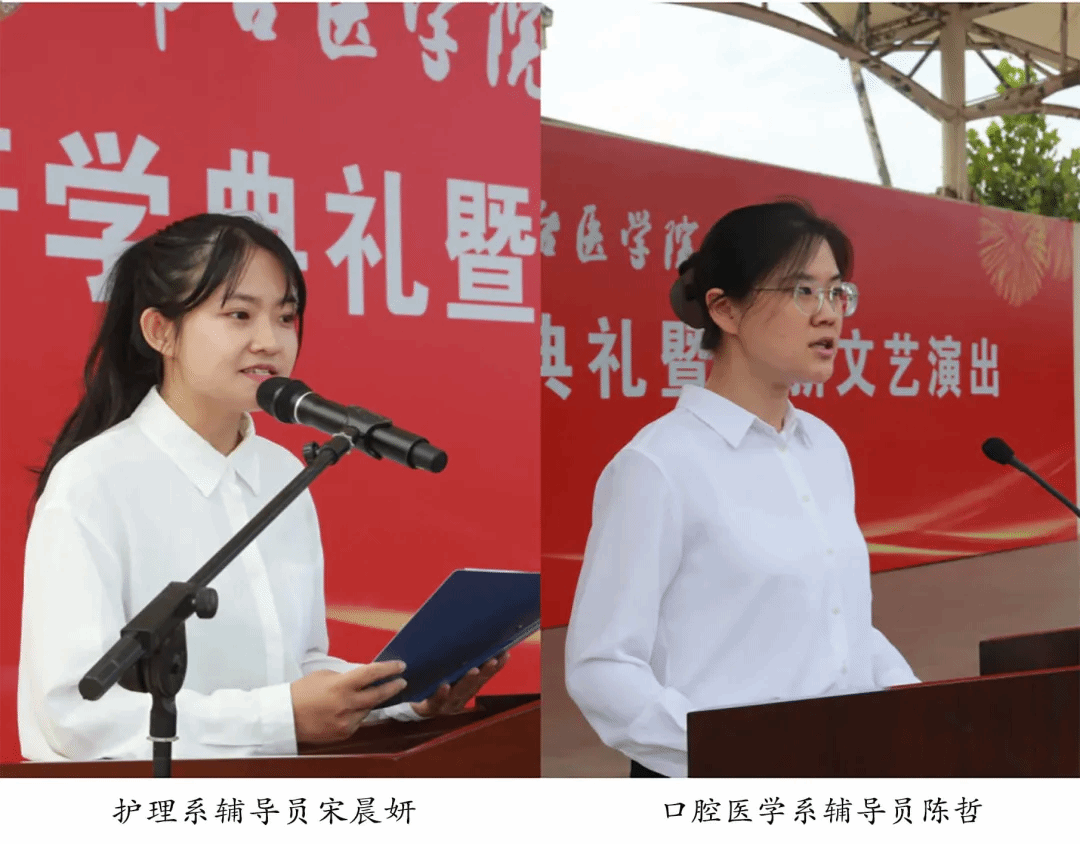 护理系辅导员宋晨妍和口腔医学系辅导员陈哲作为辅导员代表发言。她们希望同学们以“归零”的心态轻装上阵,认真对待课程学业,积极参与社团活动,拓展知识与能力,用全新的自己迎接每一个新的机遇和挑战。她们表示,无论在生活还是学习中,邢医的每一位辅导员都会做好同学们的挚友和引路人,用爱心和关怀陪伴大家走过这段宝贵的时光。