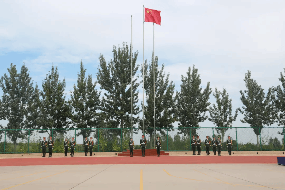 开学典礼在雄壮的国歌声中拉开序幕,全体师生起立,共同唱响国歌。