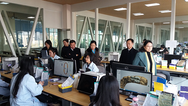 为了使学生后“1.5”在义齿加工企业的教学、实习、日常管理等工作顺利开展,11月20日,学校实习管理处处长宋书群、教务处处长曹聪云、学生工作处处长梁德军、口腔医学系主任马涛和党总支书记王振敏等人,去两家义齿加工企业进行考察。在两家企业工作人员的引导下,参观了义齿加工企业车金、车瓷、蜡型等工作车间和生产流水线、员工培训教室、员工宿舍、员工食堂等,最后通过学校和义齿加工企业座谈,就学生后“1.5”日常管理、授课、实训、考试考务、成绩管理、实习安排等教学相关事宜达成共识。