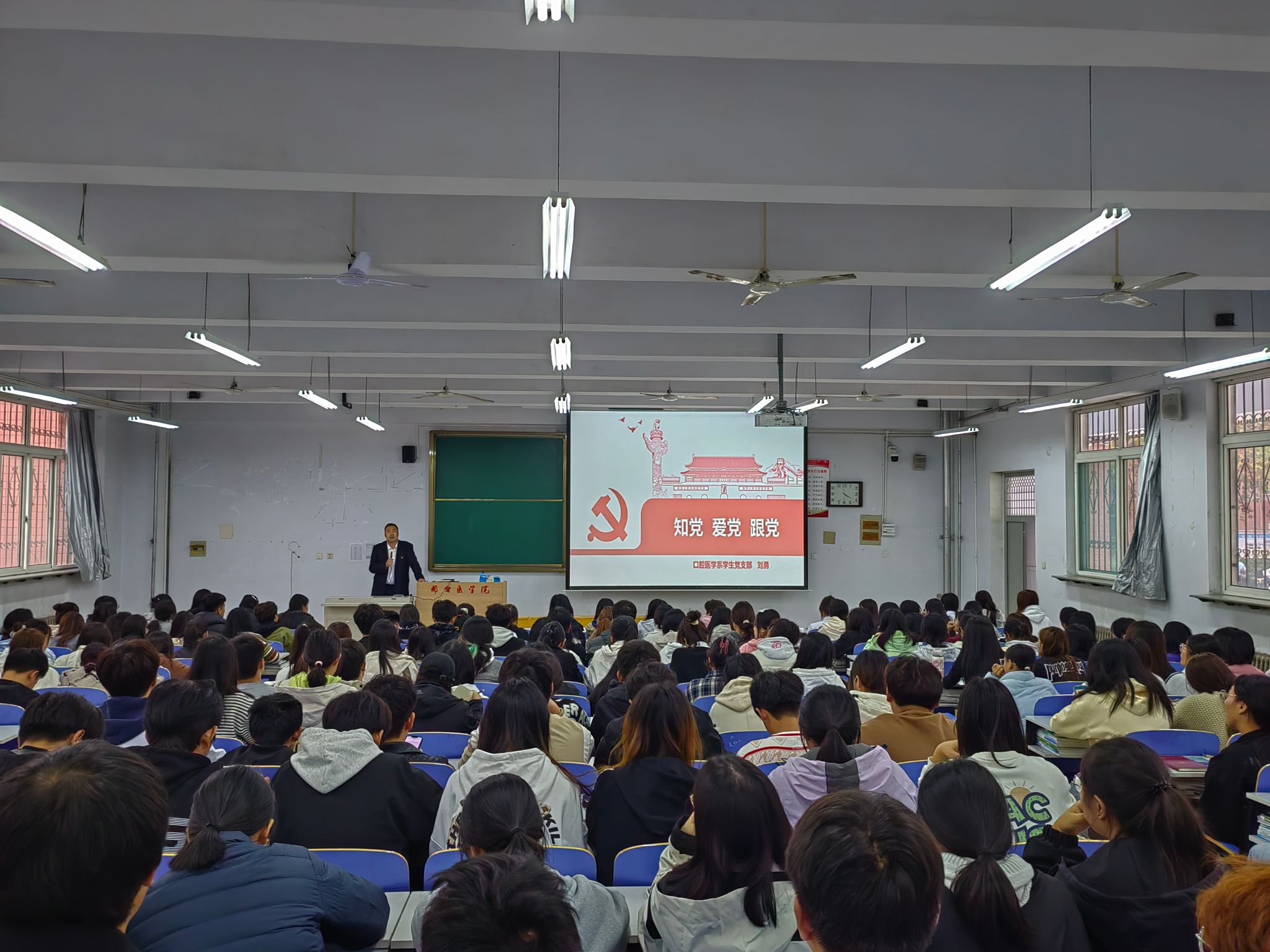 开班仪式结束后,学生党支部书记刘勇以“知党 爱党 跟党”为主题,为入党积极分子讲授培训第一课。讲座结合革命先烈事迹、党的光辉历史、党的纪律规矩等内容,教育引导入党积极分子端正入党动机,正确认识党员的责任担当,明确当代青年肩负的时代使命。他号召广大入党积极分子要按照党员标准严格要求自己,认真学习党章党规党纪,勉励同学们要学会思考、学会批判、学会选择,向革命先烈学习;要端正思想、积极作为,做有理想、敢担当、能吃苦、肯奋斗的新时代好青年,争取早日加入党组织。