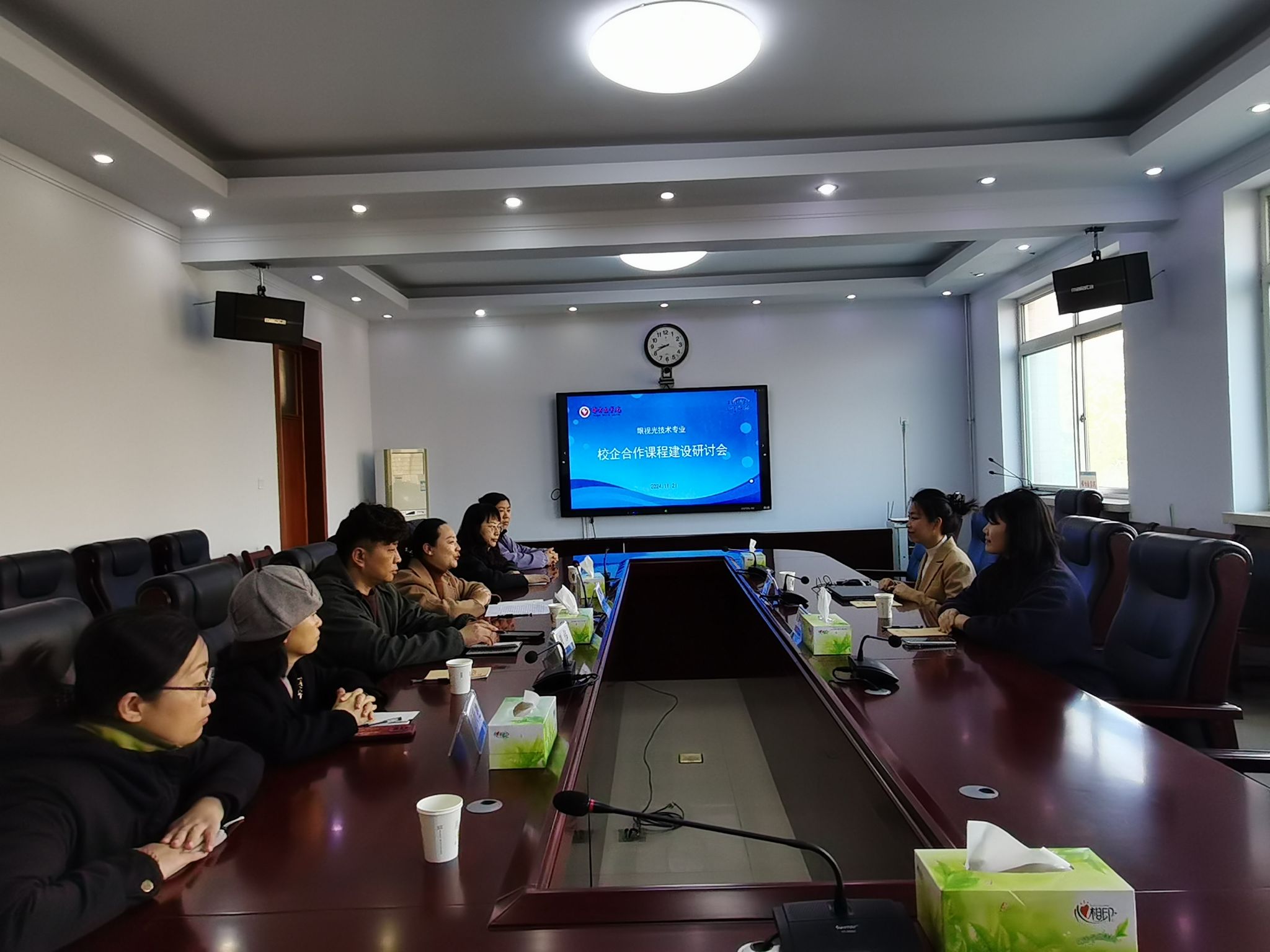 校企双方在学校行政楼三楼会议室召开了眼视光技术专业校企合作课程建设研讨会,医疗技术系党总支书记张晶娜及眼视光技术专业教师代表参加了会议。与会人员重点围绕眼视光技术专业校企合作课程教学内容的重构、授课计划的优化以及教学实践环节的创新等方面进行了深入研讨,达成了以提升人才培养质量与社会需求匹配度为指向加强合作的共识。会后,企业代表一行到医疗技术系参观了新扩建的眼视光技术专业实训中心。