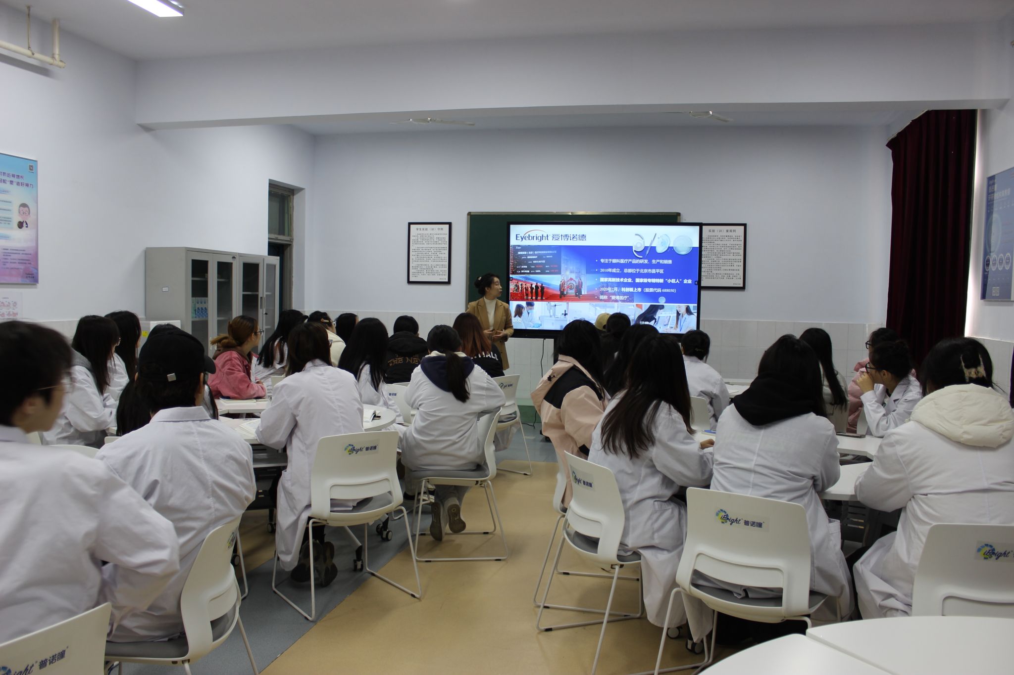 在实训中心校企共建的角膜接触镜实训室,爱博诺德企业老师面向2023级眼视光技术专业学生举办了专题讲座,介绍了眼视光行业的产业链构成与服务领域,帮助同学们全面了解自己未来可从事的行业相关领域;讲解了角膜塑形镜、多焦软镜、离焦RGP、离焦框架镜等近视防控方法,鼓励同学们关注行业前沿动态,努力学习专业知识,提升实践操作能力,不断积累实践经验,为未来的职业发展奠定坚实基础。