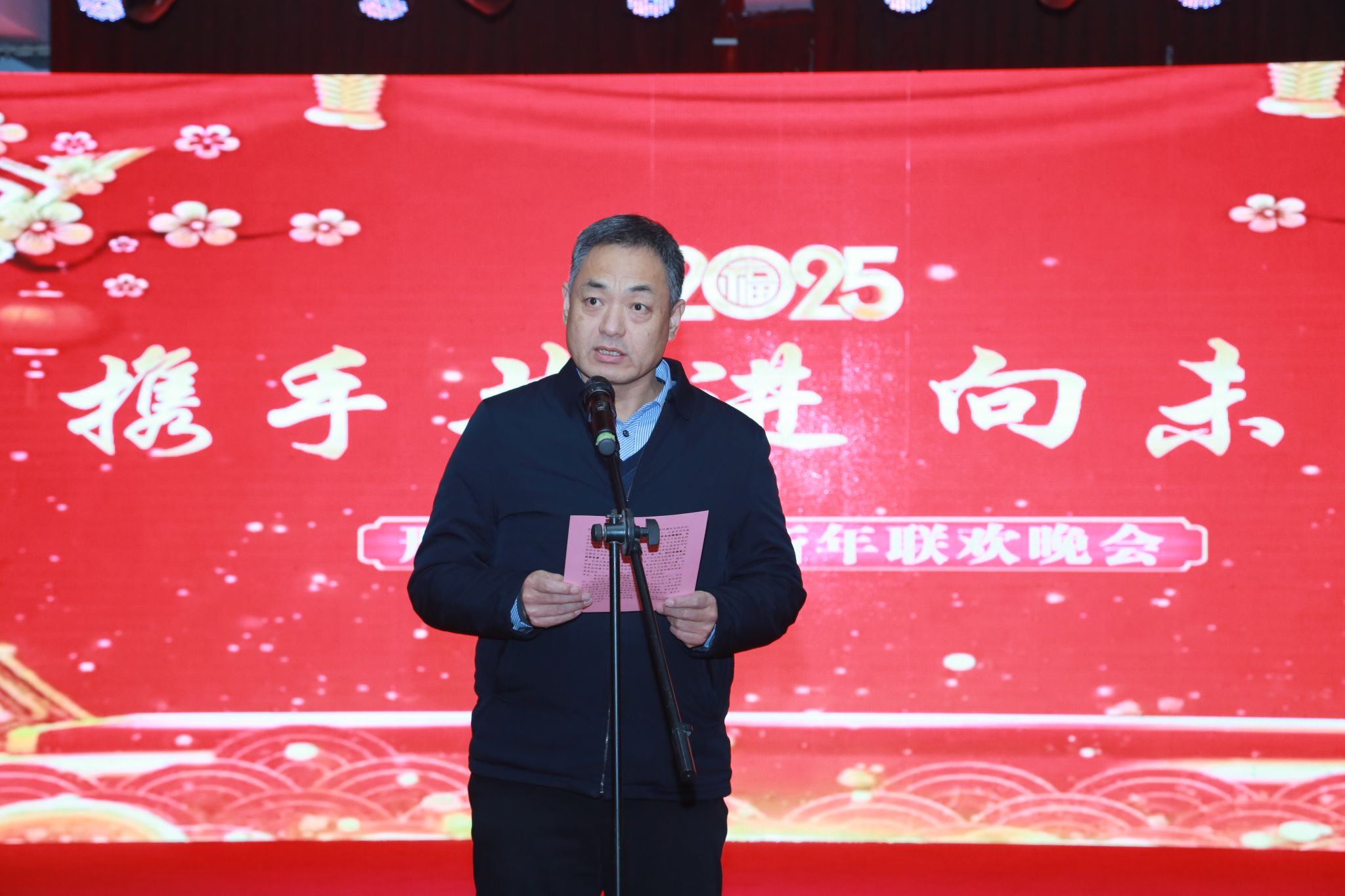 学校党委副书记张志强代表学校党委致辞,指出,2024年是学校发展史上极不平凡、具有里程碑意义的一年。学校成功晋升本科院校,本科专业建设有序推进,师资力量不断加强,学术科研成果丰硕,医教协同深度融合,服务社会彰显担当,新校区建设全面启动,党建育人成效显著,全体邢医人凝心聚力、实干笃行,以坚实步伐跑出了高质量发展的加速度。2025年是学校以高质量落实推动高质量发展的攻坚之年。全校上下要以更高昂的热情投身教育和医疗事业,为打造冀中南高等医学教育医疗科研新高地,建设全省知名的医学本科院校不懈奋斗。最后,他祝愿大家及家人在新的一年里,工作干得顺心、生活过得舒心、家庭充满温馨!预祝本次联欢晚会圆满成功!