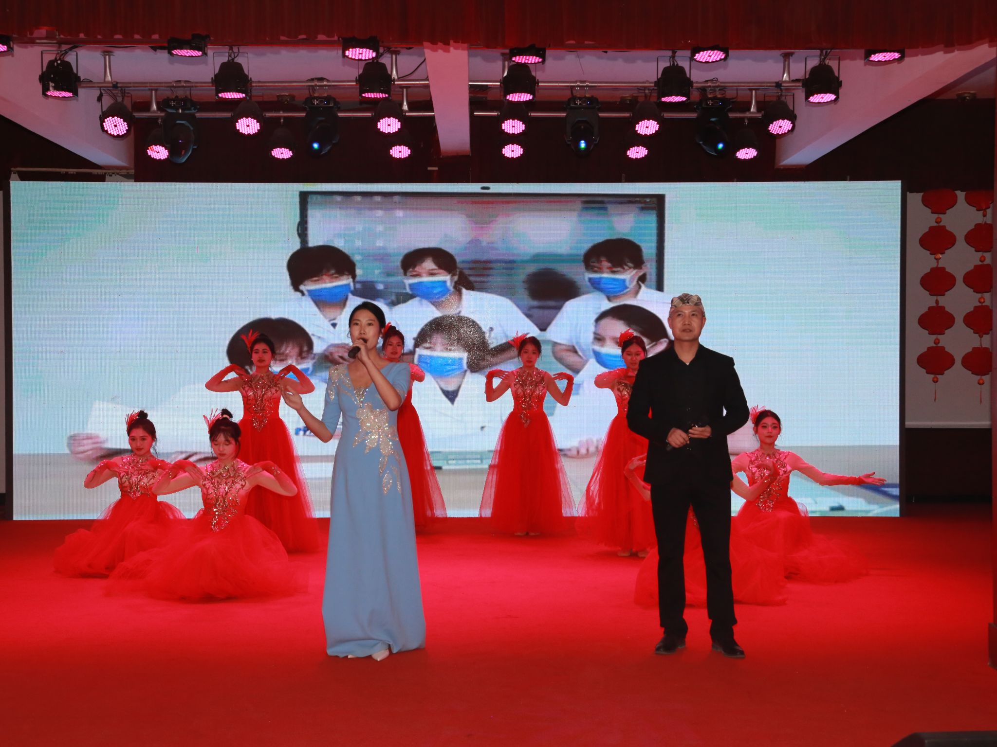 晚会节目形式多样、内容丰富,整场演出气氛热烈、高潮迭起,既有激情四溢的舞蹈表演,也有悠扬动听的歌曲演唱,更有饱含深情的诗歌朗诵,为观众带来了一场精彩纷呈的视听盛宴。校院师生在欢乐、祥和、奋发、激昂的气氛中,共同感受“一校三院一中心” 融合发展、医教协同、携手共进、再创辉煌的奋进乐章。