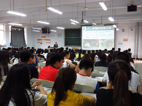5月11日,Beat365大学生形势政策报告会在8号楼阶梯教室开讲,大学生形势政策宣讲团成员、社科部老师吕文静以《萨德来了》为题,给来自各系的200多名学生做了一场精彩报告。