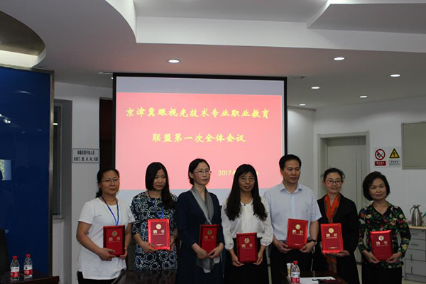 会上,天津职业大学校长刘斌致欢迎辞,北京商业学校校长助理田禾发言,中国眼镜协会秘书长刘多宁宣读了中国眼镜协会理事长崔毅对联盟的贺词。各院校代表共同为联盟揭牌,随着启动球的高速运转,京津冀眼视光专业职业教育联盟正式成立。