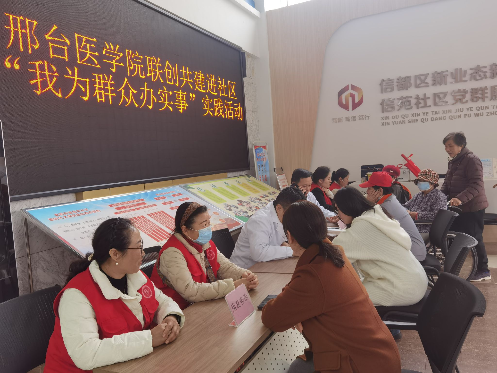 学习结束后,各基层党组织积极开展形式多样的学雷锋志愿服务活动。临床医学系组织师生前往石安高速小区开展健康义诊与环境清洁活动,为居民诊断疾病,耐心解答健康问题,清扫卫生死角,营造干净整洁的居住环境。中医系带领师生走进联创共建小区鸿溪书香园,在社区党群活动中心开展中医健康义诊,志愿者们从用药、饮食、生活习惯等方面讲解中医养生知识,大力传播中医健康理念,深受居民好评。老年养护实训中心聚焦住养老人健康需求,开展《合理饮食》《保持良好睡眠》知识讲座,引导老人养成健康生活方式。附属医院(市中心医院)组织了“全国爱耳日”、“三八”宣教、“世界肥胖日”等义诊活动,服务群众1500余名,发放科普资料1000余份,帮助居民提高健康意识。第二附属医院(市肿瘤医院)组织党员走进任泽区后大宋村,为当地居民提供免费的健康咨询以及测血压、测血糖、心电图等检查项目,以贴心服务守护居民健康。