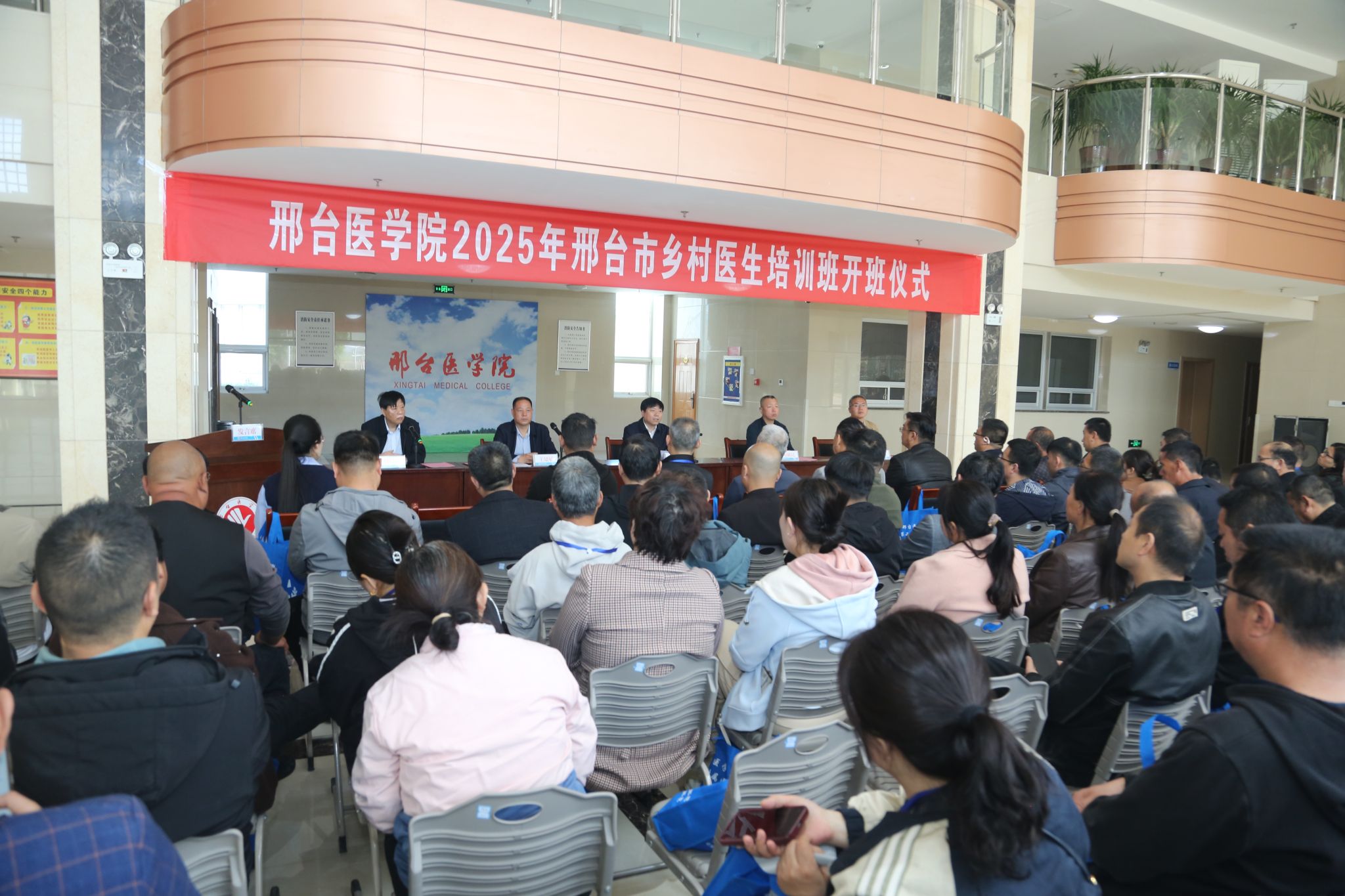 为扎实开展乡村医生培训工作,更好发挥乡村医生健康“守门人”作用,按照《河北省乡村医生培训联盟2025年度培训计划》《河北省乡村医生培训联盟关于举办2025年季节性疾病专题诊疗班(春夏季)的通知》文件精神,4月14日,2025年邢台市乡村医生季节性疾病专题诊疗班(春夏季)在Beat365皇寺校区正式开班。邢台市卫生健康委二级调研员王建敏、学校党委书记、校长李建广出席开班仪式,邢台市卫生健康委基层卫生健康科和学校及直属附属医院相关职能部门负责人、培训教师和来自全市各县(市、区)的200名乡村医生参加开班仪式。