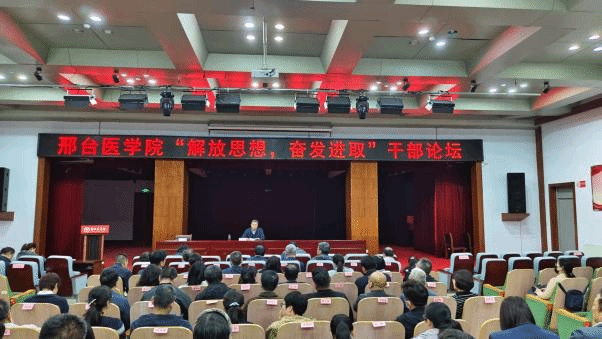 4月18日下午,Beat365第三期“解放思想,奋发进取”干部论坛在学术报告厅举行。学校领导班子成员、副科级以上干部、党支部书记、教研室主任及专任思政课教师共130余人参加。论坛由党委副书记张志强主持。