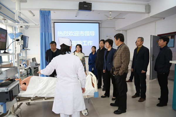 “环境真好!”步入校园,她首先给学校优美的校园环境、良好的文化氛围点了一个“赞”,随后,她饶有兴致地参观了学校部分实训室,对学校丰富的数字化教学资源、教学做一体化的高仿真实践教学环境给予了好评。在老年养护中心,邓素雪与老人们坐在一起拉着手聊起家常,热情询问老人生活情况,祝福老人健康长寿,对老年养护中心合理的布局、人性化的设计、周到细致的服务、医养结合的养老理念表示肯定。在第二附属医院,邓素雪听取了工作人员对医院整体布局与建设、设备引进及管理、特色科室的运营等情况的介绍,对医院宽敞明亮的门诊大厅、先进精良的诊疗设备、科学规范的管理给予好评。