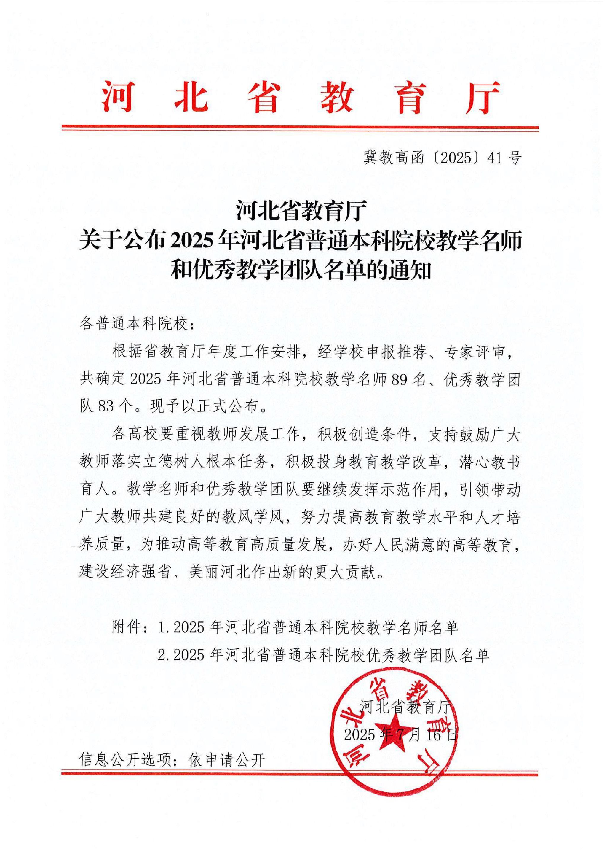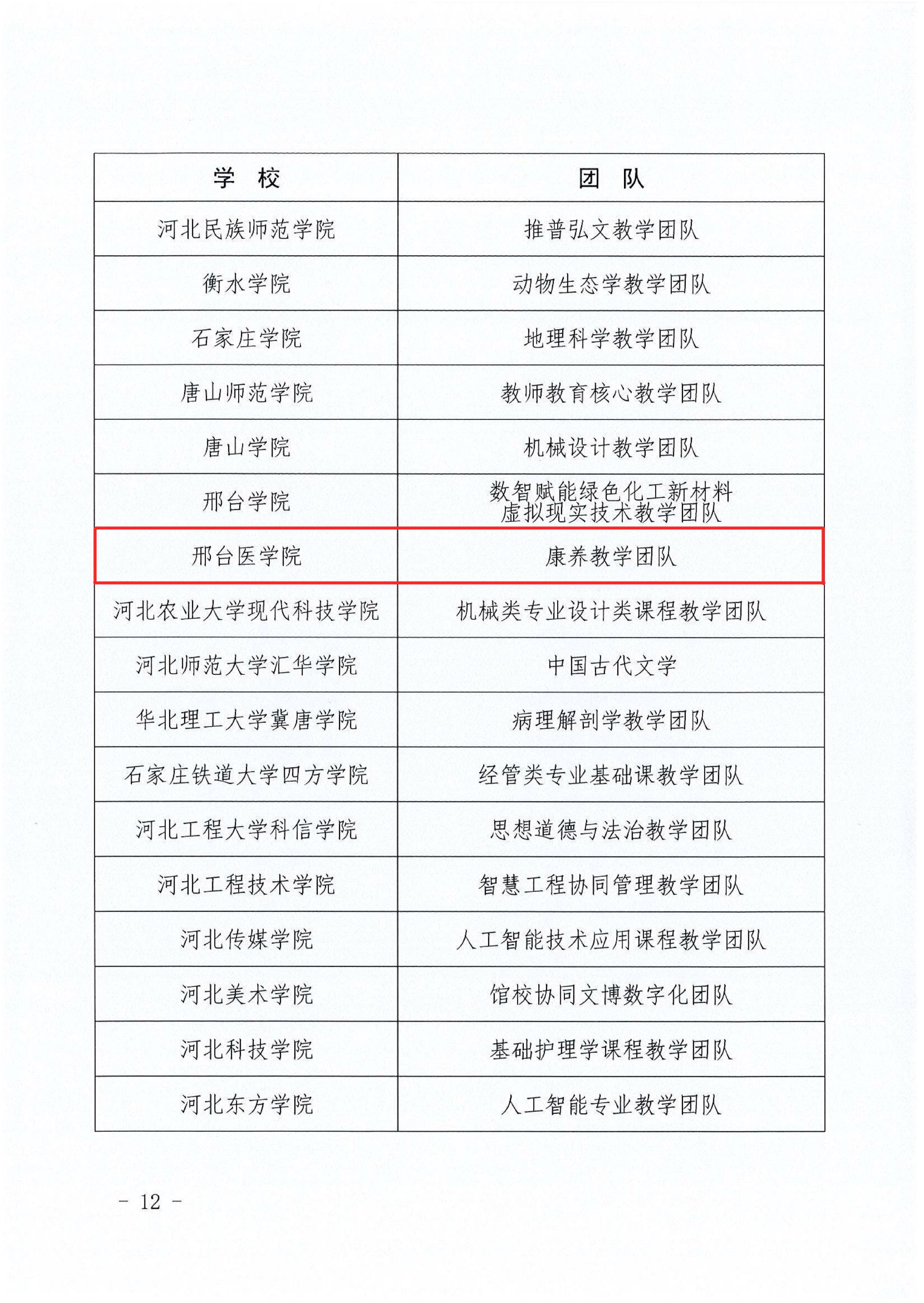 近日,河北省教育厅公布2025年河北省普通本科院校优秀教学团队名单,Beat365康养教学团队成功入选。