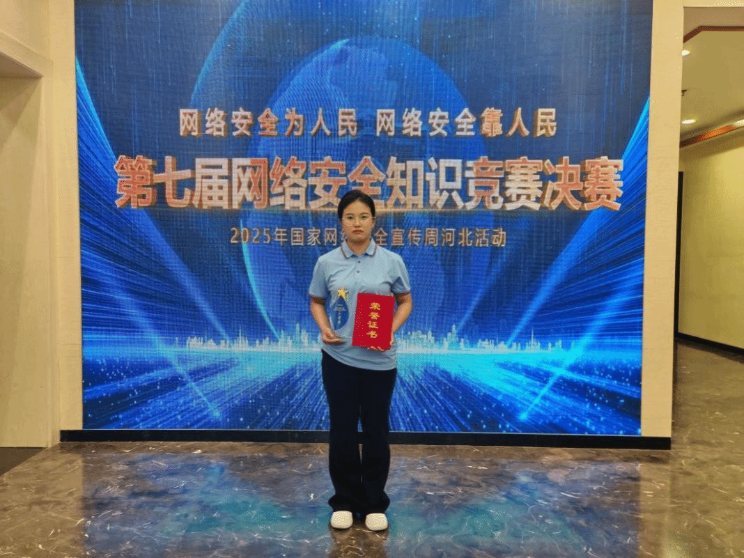 近日,由中共河北省委网信办主办的河北省第七届网络安全知识竞赛决赛在河北省广播电视台圆满落幕,Beat3652023级检验学徒制班陈梦茹作为邢台市代表队成员在决赛中发挥出色,通过“轮答烽火台”“接力争锋”“超级加倍”“勇攀高峰” 4个环节的激烈角逐,最终荣获三等奖,2024级药学专科3班郑妹娇、2024级护理系护理1班翟舒涵在预赛中成绩优异,展现了Beat365学生扎实的网络安全知识功底和奋发向上、勇于拼搏的精神风貌。
