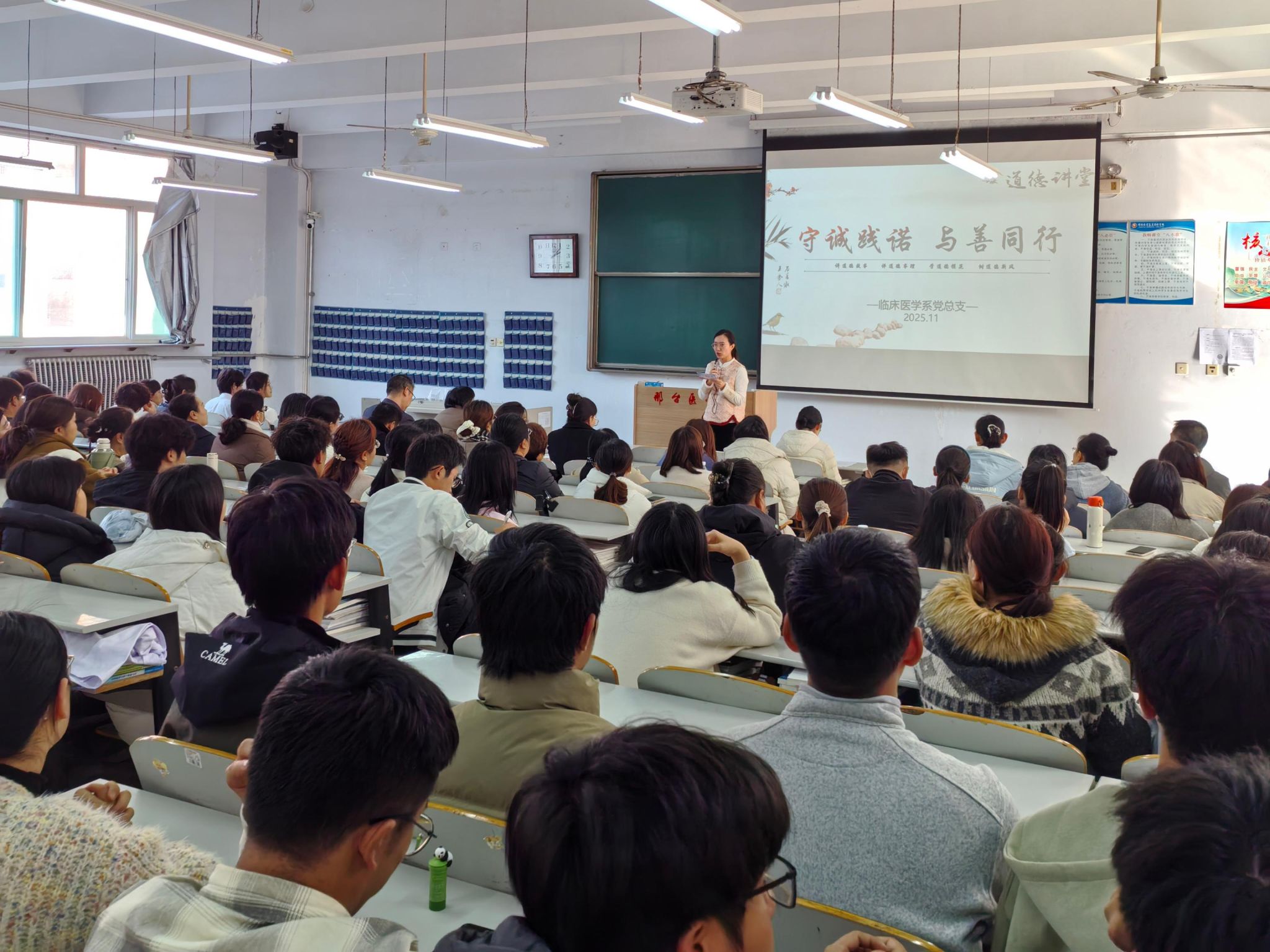 近日,临床医学系党总支举办“守诚践诺,与善同行”道德讲堂活动,学校各党总支150余名师生参加。