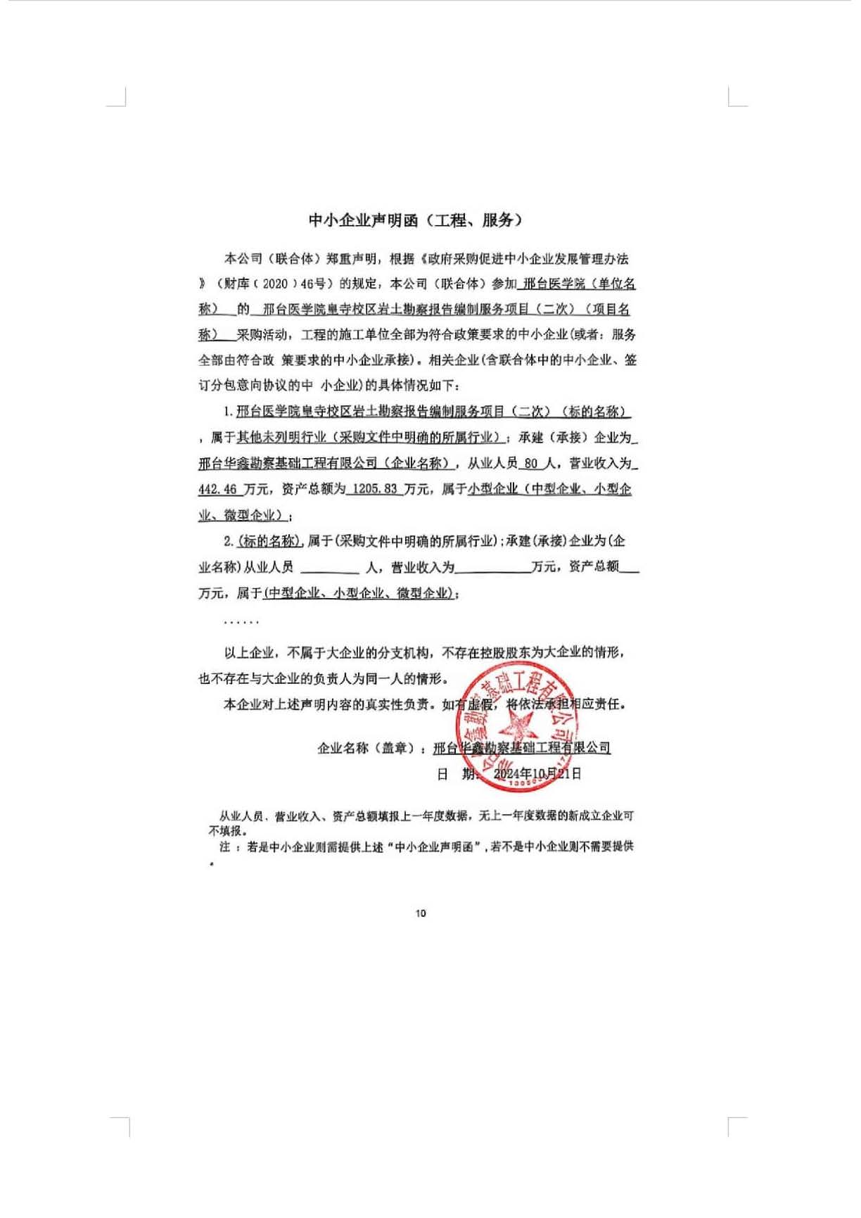 供应商名称:邢台华鑫勘察基础工程有限公司