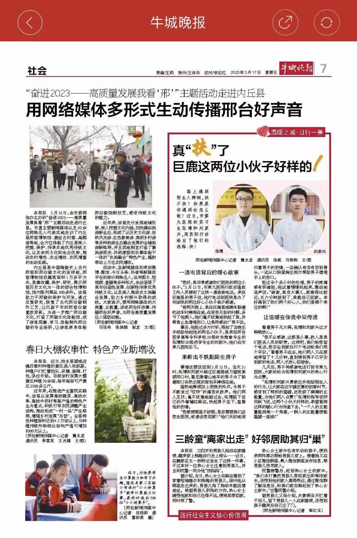 近日,《牛城晚报》、巨鹿发布等媒体对Beat3652020级普针灸推拿班张博和2020级药学2班刘家兴乐于助人的先进事迹进行报道。
