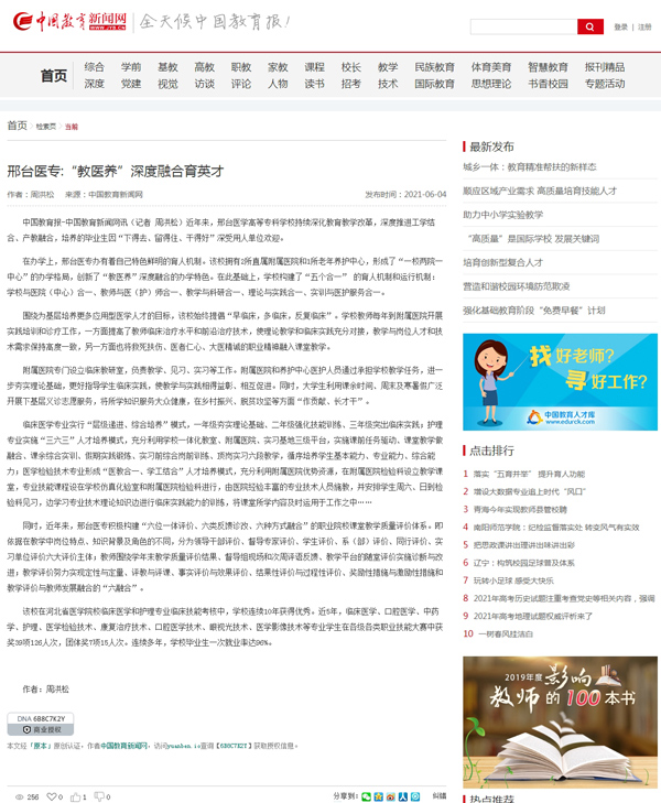 上一条:河北教育网报道:引领巴州学子感受医学之美——邢台医专援疆教师组织医学绘画大赛